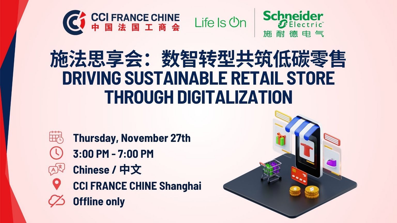 We sincerely invite you to join our event Driving Sustainable Retail Store through Digitalization, co-hosted by CCI FRANCE CHINE and Schneider Electrics. In this event, we will invite experts from government sectors, pioneers from top retail enterprises and innovative leaders in energy management field. With all of your involvement, let‘s co-create the new STORE FORMAT for a more sustainable future !