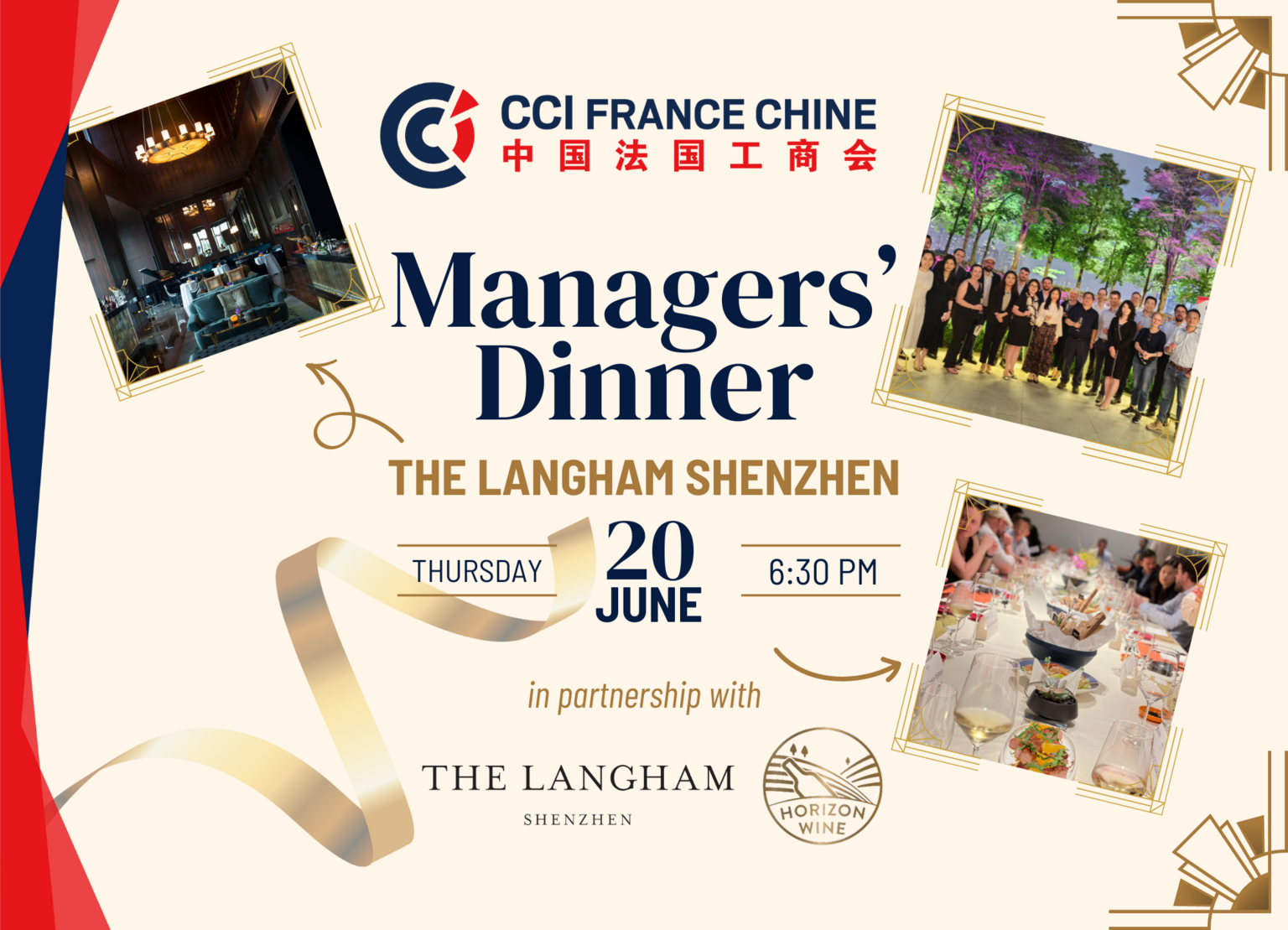 CCI FRANCE CHINE is delighted to invite its members to its upcoming Managers' Dinner in Shenzhen.