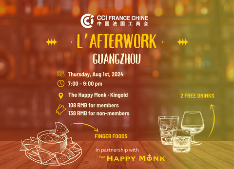 CCI FRANCE CHINE is pleased to invite you to "L'Afterwork", a perfect opportunity after a long day at work to gather around and share a moment with colleagues, friends and other members of the Sino-French Business Community.
