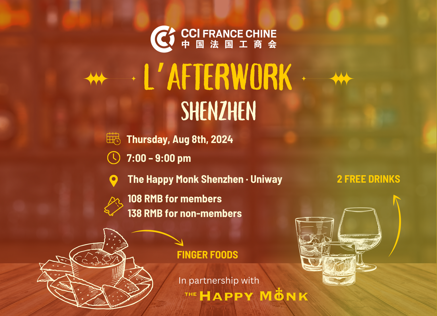 After a first edition on August 1st in Guangzhou, CCI FRANCE CHINE is pleased to invite you to "L'Afterwork", a perfect opportunity after a long day at work to gather around and share a moment with colleagues, friends and other members of the Sino-French Business Community.