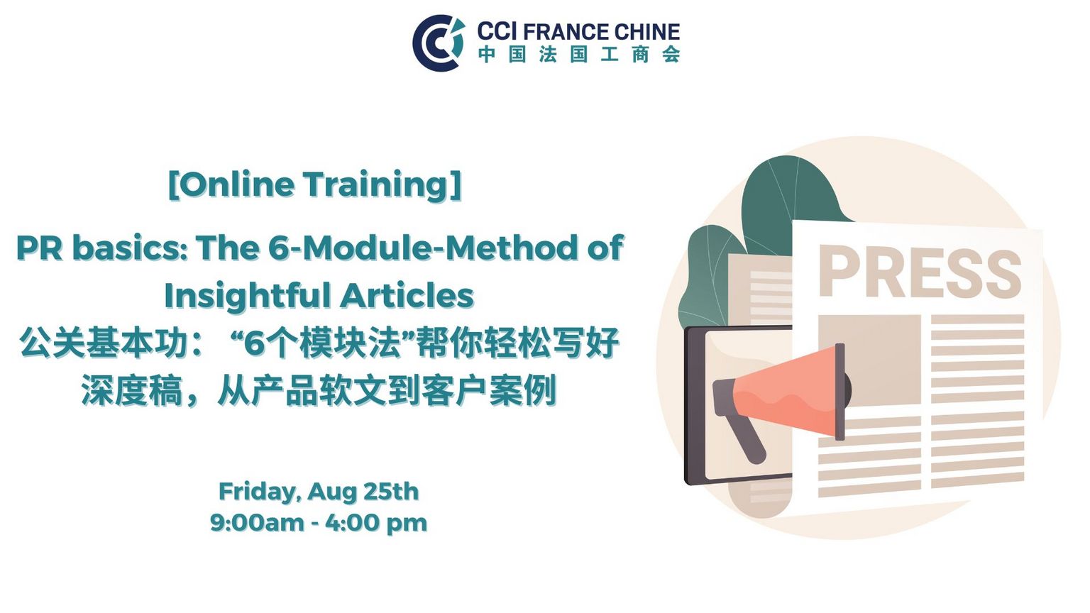 08.25 | [Online Training] PR basics: The 6-Module-Method of Insightful Articles 公关基本功: “6个模块法”帮你轻松写好深度稿,从产品软文到客户案例