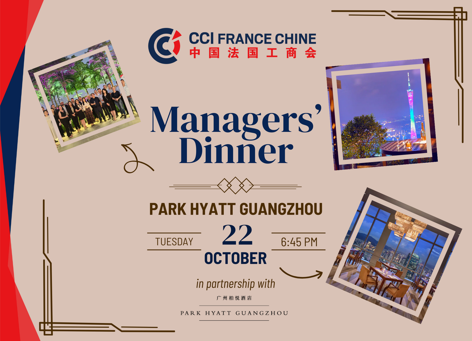 CCI FRANCE CHINE is delighted to invite its members high level representative to its upcoming Managers' Dinner in Guangzhou.