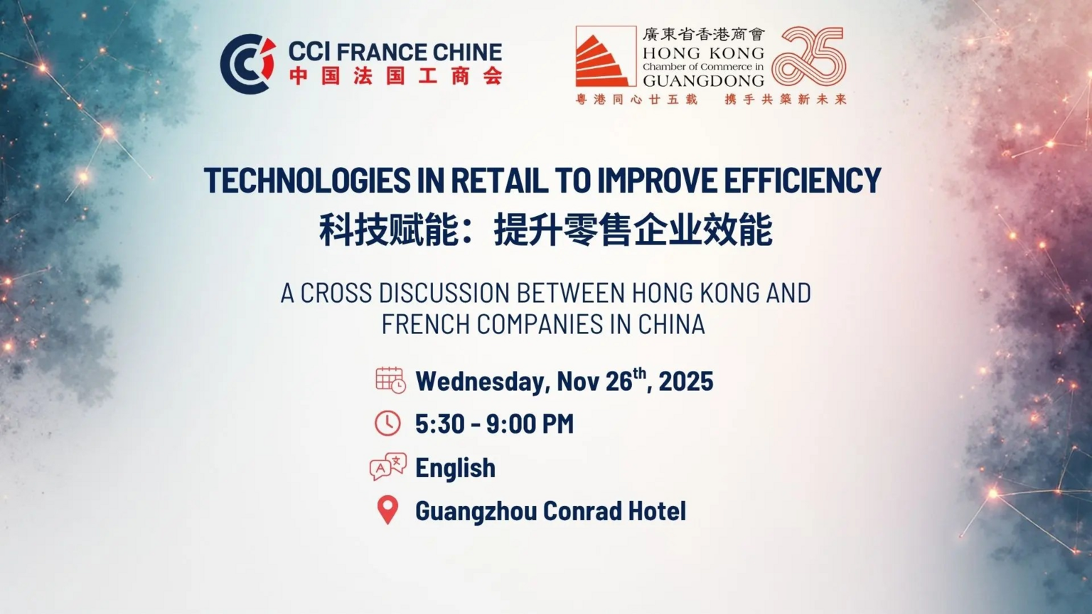 The Hong Kong Chamber of Commerce in Guangdong and CCI FRANCE CHINE are partnering to bring you a top-level discussion on the impact of technologies in the retail sector.