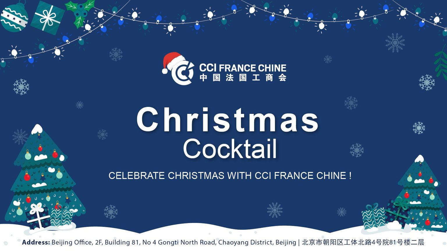 Join us to celebrate the holiday season with French and Chinese officials and all the Sino-French business community, in the presence of Mr. Laurent BILI, French Ambassador to China, Mr. Jean-Marc FENET, Minister counsellor of economic affairs of the French Embassy in China, Mr. Antoine ZHANG, Vice-President CCI FRANCE CHINE Beijing and CCI FRANCE CHINE's Board Members. | ||