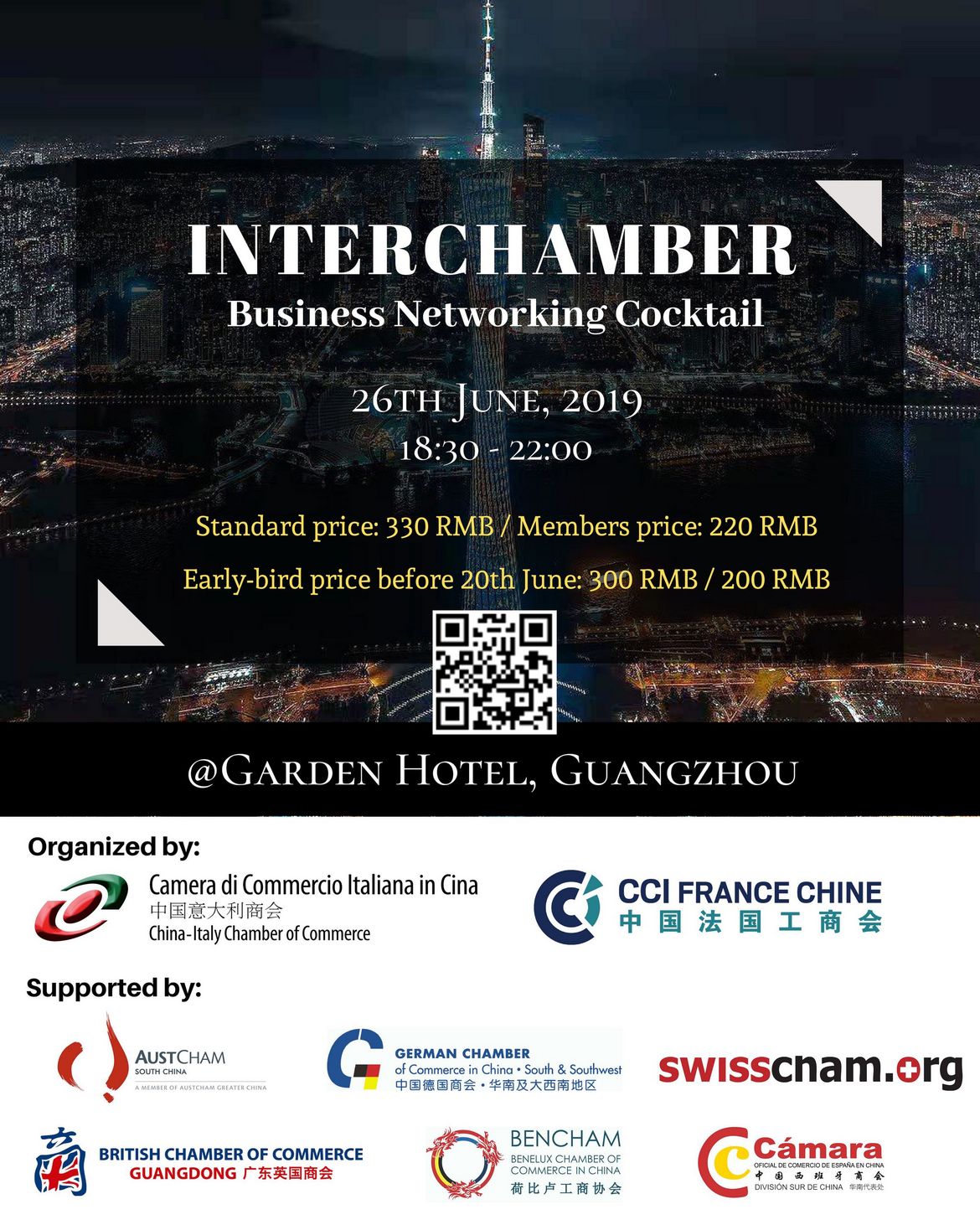 With the support of 6 other International Chambers, the French Chamber and Italian Chamber are glad to invite you to the InterChamber Business Networking Drinks in Guangzhou.