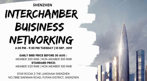 The Intherchamber Business Networking Drinks in Shenzhen will be held in The Langham Shenzhen on September 10th from 6:30 pm to 9:30 pm