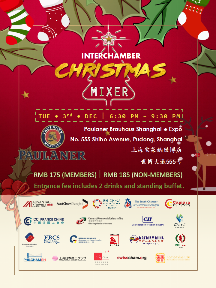 CCI FRANCE CHINE, in cooperation with 19 other Foreign Chambers, is pleased to invite you to its Interchamber Christmas Mixer on the 3rd of December at the Paulaner Bauhaus! Come join us and celebrate Christmas