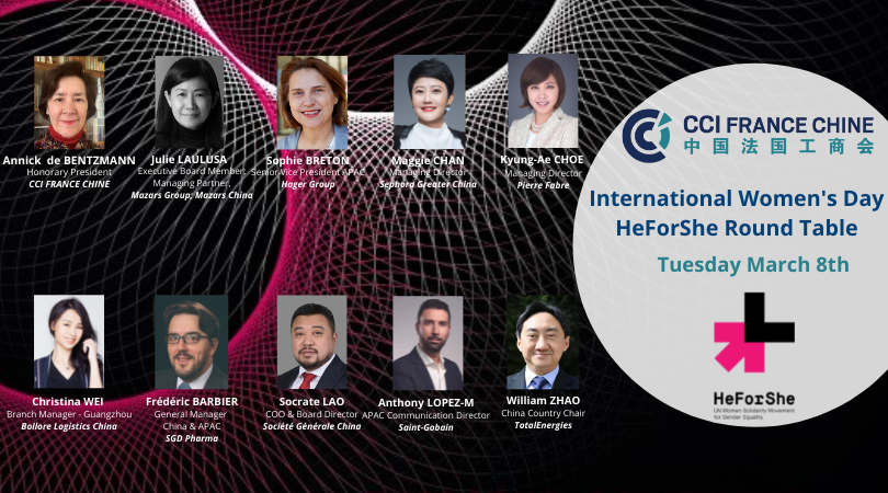 On March 8th, CCI FRANCE CHINE will be hosting a mixed gender roundtable on theme with the HeForShe campaign in honor of international women’s day. | |||