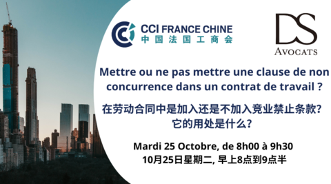 Quelle est l'utilité de la clause de non concurrence dans un contrat de travail ? Que faire si elle n’est pas respectée ? Le but de cet événement est de partir de ces questions de base que se posent tous les DRH pour aboutir à une présentation complète des règles et de la pratique chinoise en matière de non concurrence.