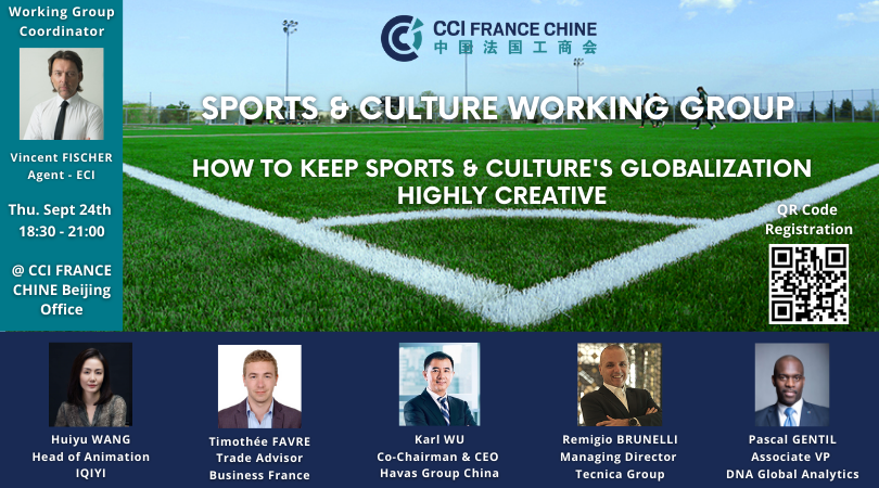 For the launching of the new CCI FRANCE CHINE Beijing Sports & Culture Working Group. Our expert speakers will share their experience and expectations of the future on the below topics.