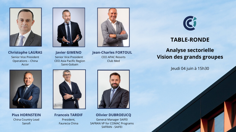 la CCI FRANCE CHINE à le plaisir de convier ses membres à une table-ronde sectorielle en présence de 6 hautes personnalités de son réseau.