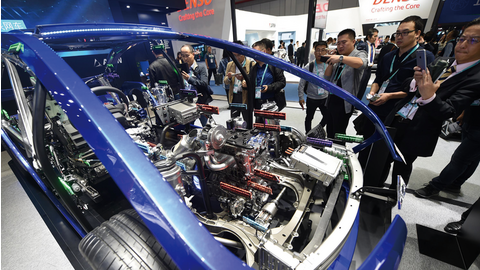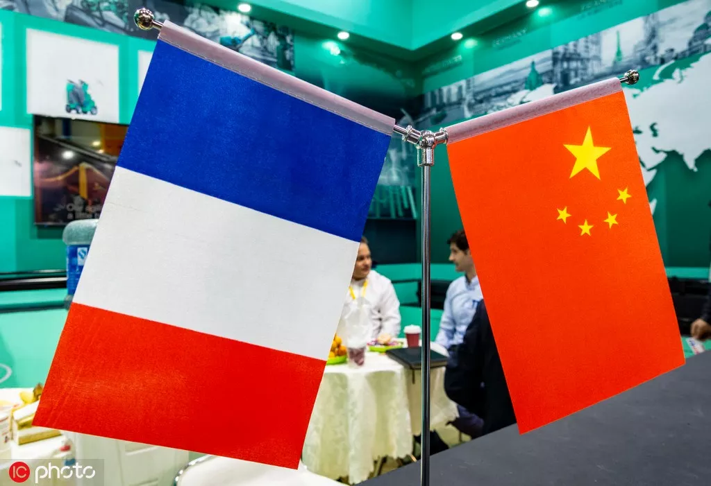 National flags of China and France are displayed during an expo in Shanghai on Nov 27, 2018. [Photo/IC]