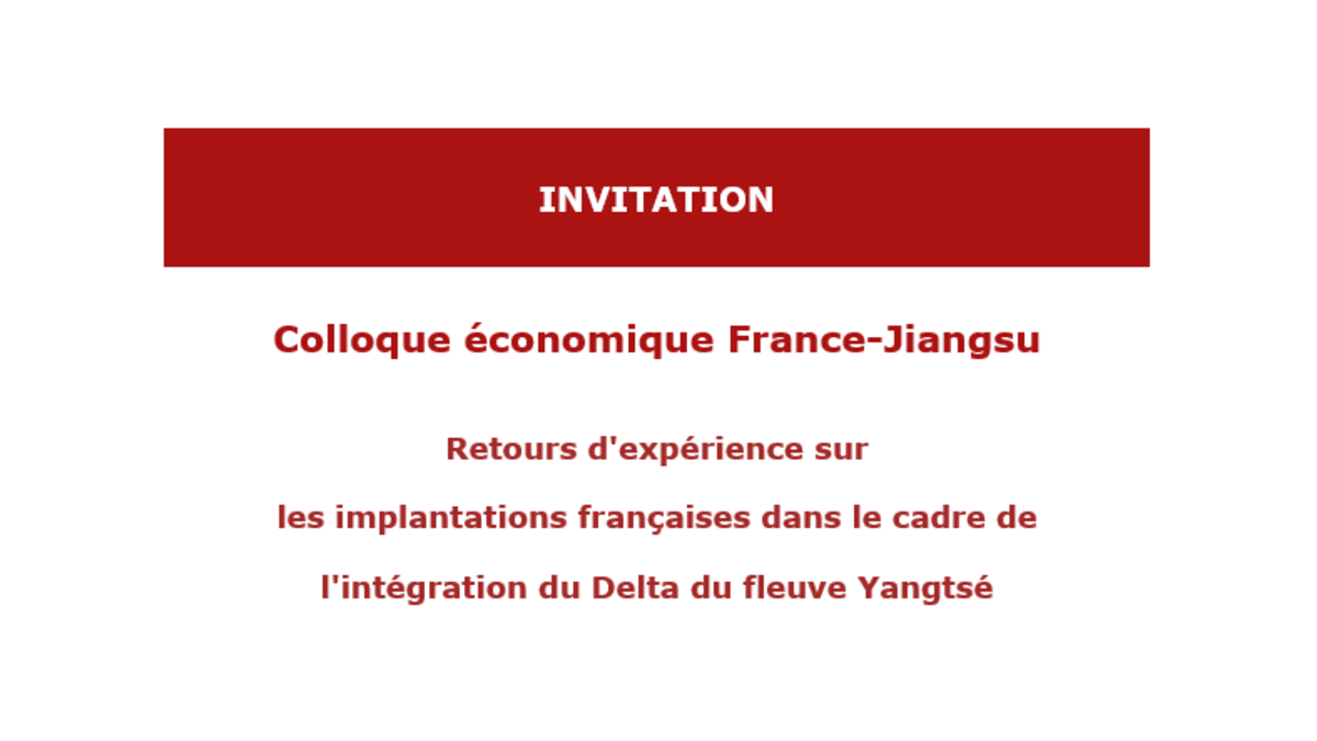 Le Département du Commerce (DOC) de la Province du Jiangsu et le Gouvernement municipal de Taicang ont le plaisir d'organiser le Colloque économique France-Jiangsu.