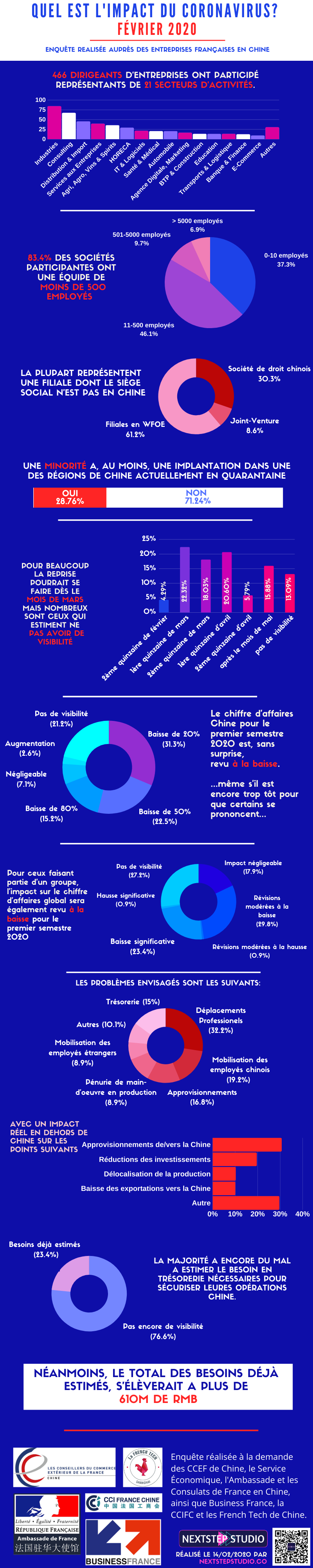 Survey carried out in collaboration by the CCEF, the Economic Service of the French Embassy and French Consulates in China, the CCI FRANCE CHINE, Business France and La French Tech to measure the short-term impact of the Covid-19 crisis on French companies established in China.