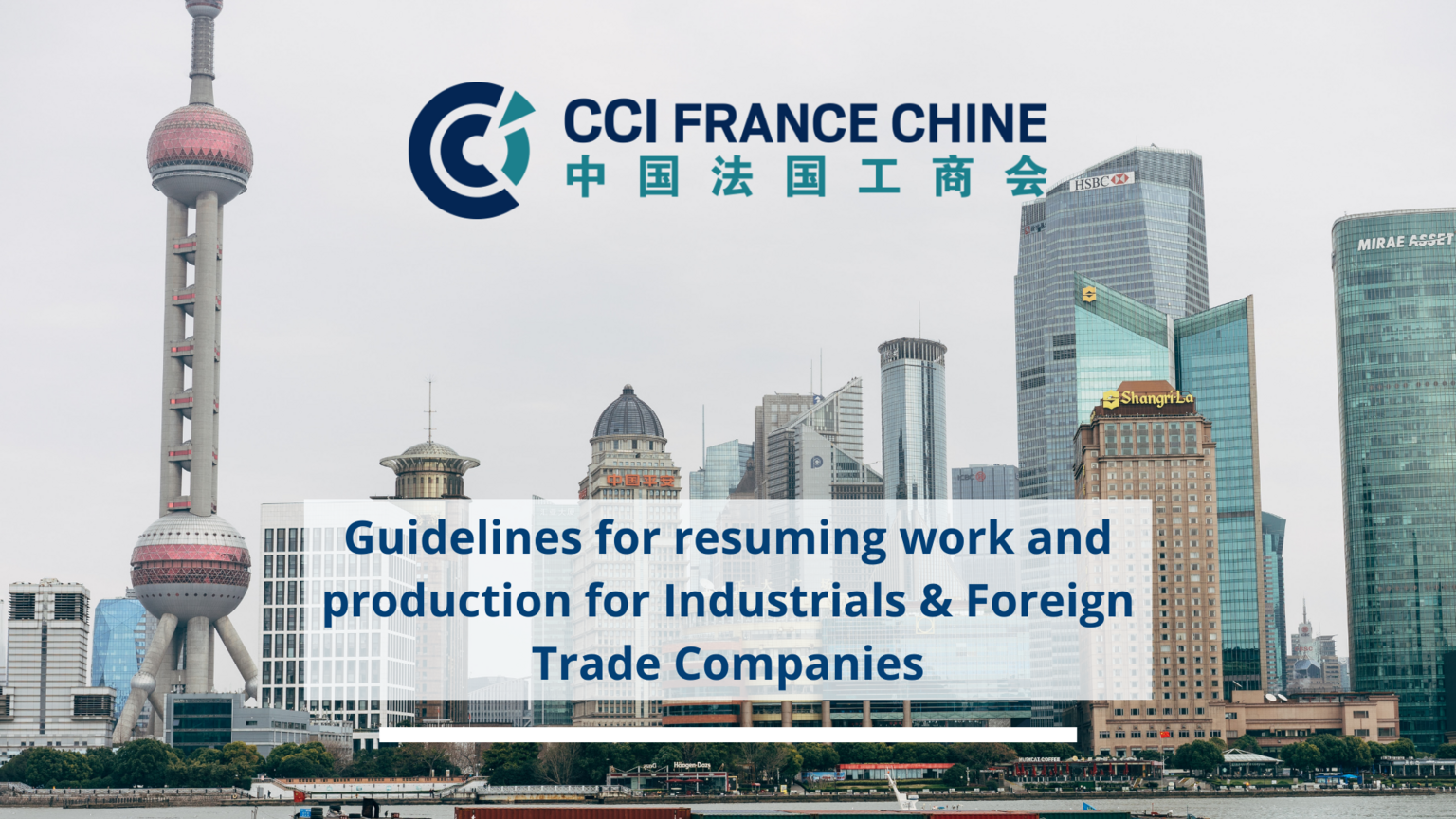 Please find below two documents required from MOFCOM that you can submit to the relevant contact of your district. 1. Application Format: Click here to download the document 2. Letter of commitment: Click here to download the document CCI FRANCE CHINE remain at your disposal at this moment in Shanghai and remain more than ever mobilized to continue meeting your specific needs. Your CCI FRANCE CHINE Team |