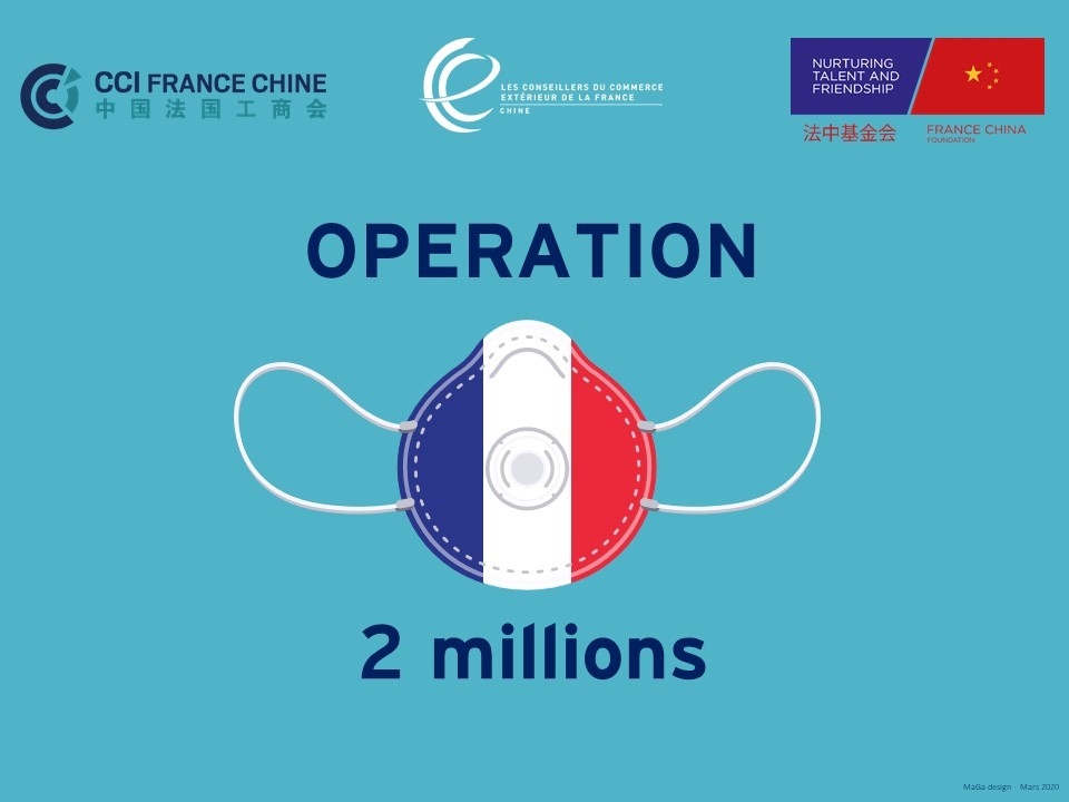 Based on their own experience in China, the first country affected by the coronavirus, the French Foreign Trade Advisors (CCE) in China, CCI FRANCE CHINE and the France China Foundation have joined their efforts with the help of the French Embassy in China to coordinate the supply of a donation of 2.2 million masks to France.