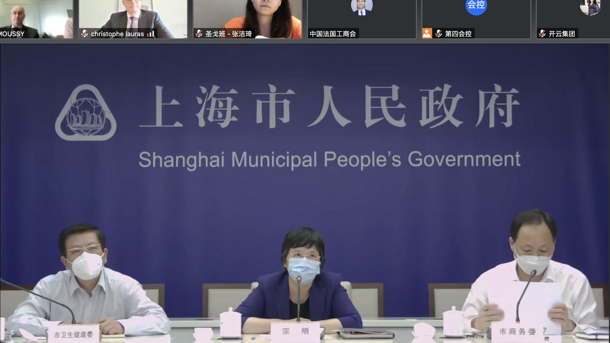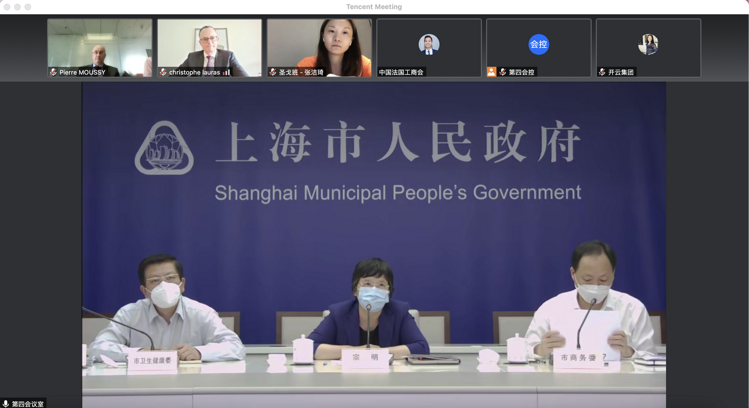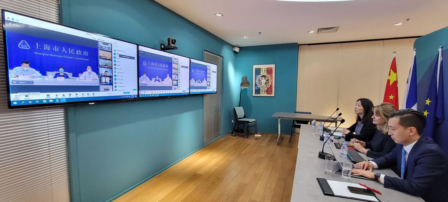 In the afternoon of June 17th, 2022, CCI FRANCE CHINE and several French companies attended an online meeting held by Mrs. Zong Ming, the vice-mayor of the municipality of Shanghai. Representatives of relevant municipal departments and district governments joined them.
