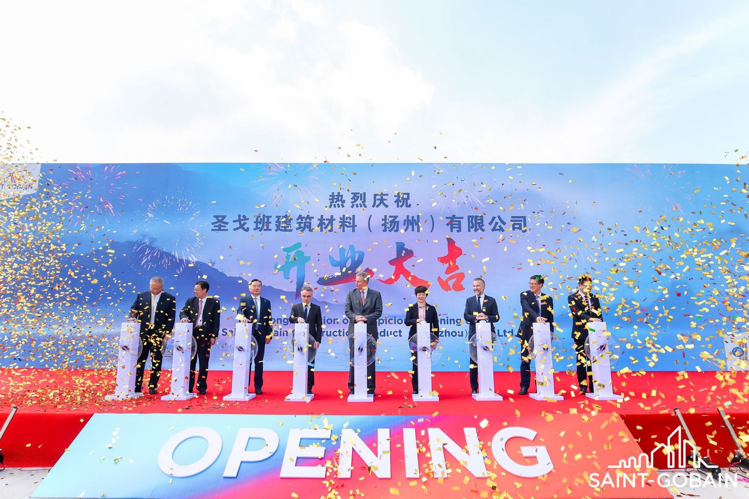 The ceremony was successfully held in the presence of Javier Gimeno, Senior VP of the Saint-Gobain Group and CEO APAC, his Excellency Laurent Bili, Ambassador of France to China, benoit guidee, Consul General of France in Shanghai and officials from Yangzhou city.