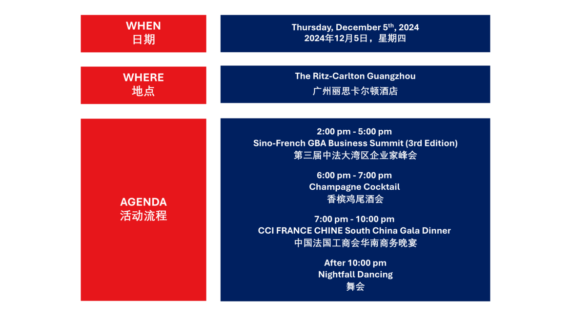 SINO-FRENCH GBA BUSINESS SUMMIT & GALA | 中法大湾区企业家峰会及中国法国工商会商务晚宴